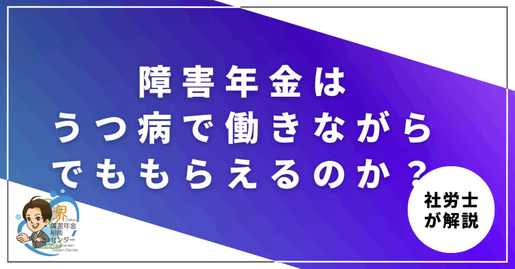 そのような場合に利用できるのが障害年金です。障害年金は、うつ病を含む精神疾患によって「労働能力や日常生活に制限がある」と認められたときに支給されます。