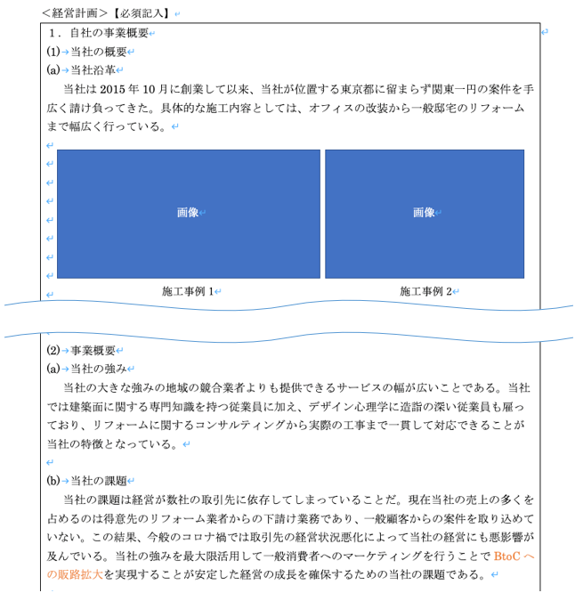 申請書類の作成を中心に支援するサービスです。事業計画の骨子をあなたが提供し、それをもとに専門家が形にします。